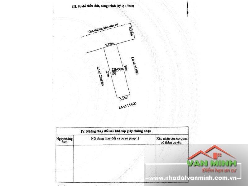 - Đất ở, vuông vắn, rộng rãi, thông thoáng. DTMB 103m2 (5,15m x 20m), hướng Tây Bắc.