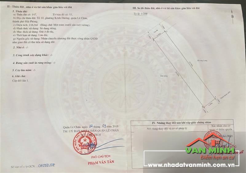 - Đất mặt đường Đào Nhuận - Kênh Dương Hải Phòng. - Vị trí đẹp vỉa hè 3m. - Diện tích 116m ngang 4,5m. - Sổ đỏ cc. - Giá chỉ 81 triệu /m có thương lượng.