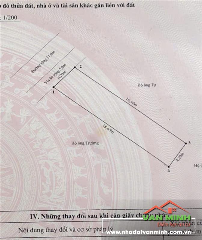 - Ngang 4,2m. Tổng 76,9m² - Hướng: Tây bắc - Xây cao tầng kinh doanh.... Văn phòng....