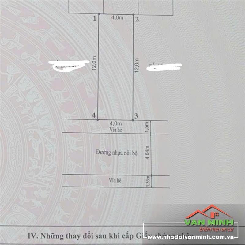 - Diện tích: 48m² (ngang 4m, vuông vắn) - Ngõ 5m rải nhựa, có vỉa hè 1.5m, cách mặt đường chỉ vài chục mét.