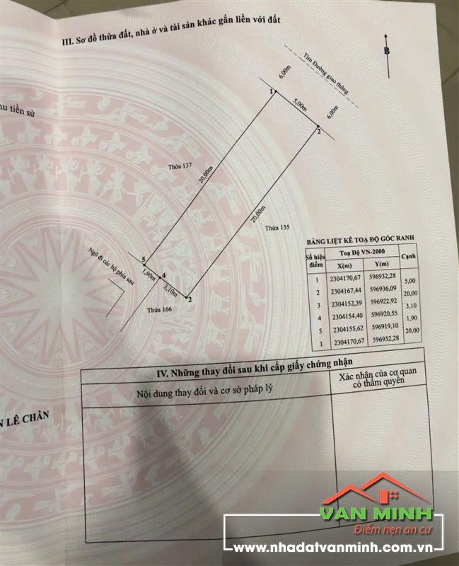 - Diện tích: 100m2. Ngang 5m. Dài 20m - Hướng Đông Bắc. - Vị trí nằm ngay gần Aeon và Hoàng Huy Commerce. - Đường rộng 10m. Vỉa hè rộng 6m. - Khe kỹ thuật 2m. - Giá: ib NHÀ ĐẤT VĂN MINH điểm hẹn an cư.