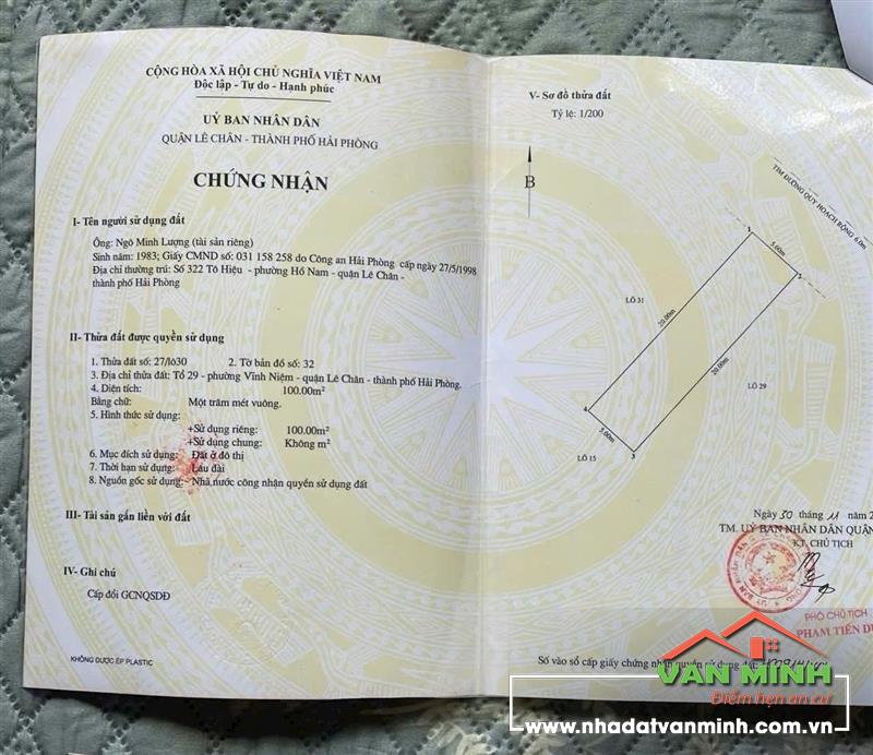 Chuyển nhượng lô đất (tặng) nhà 2 tầng trên đất trong ngõ 207 Lán Bè, Lê Chân, Hải Phòng - 5.050.000.000 VNĐ