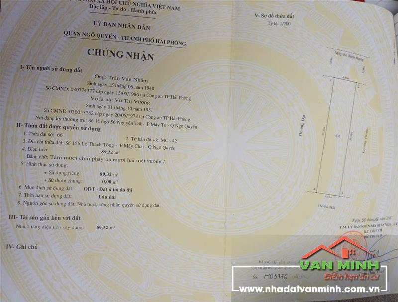 BÁN NHÀ 2 MẶT ĐƯỜNG LÊ THÁNH TÔNG, NGÔ QUYỀN – HẢI PHÒNG