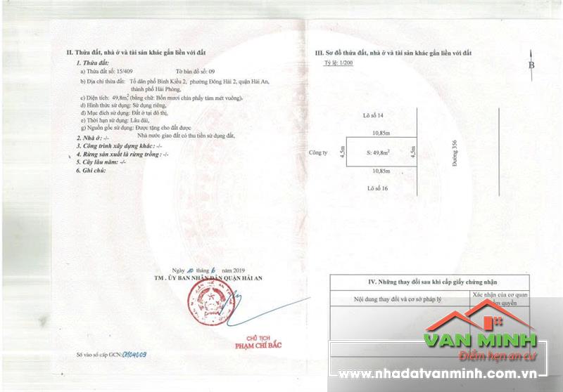 Chuyển nhượng lô đất mặt đường Chùa Vẽ, Bình Kiều 2, Hải An, Hải Phòng