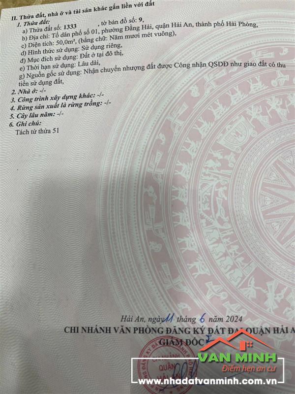 🌟 Bán đất ngõ 455 Đằng Hải - Hải An - Hải Phòng - Diện tích: 50m2 ngang 4.5m - Hướng: Nam mát mẻ - Ngõ trước nhà rộng gần 3m, oto nhỏ vào tận cửa - Khu dân cư đông đúc an ninh tốt - Siêu đẹp để xây dựng nhà an cư lập nghiệp - Bìa đỏ chính chủ ❤️ Giá 2.45 tỷ bớt nhẹ ------------- Ngọc Anh Văn Minh - Chuyên BĐS khu vực Hải An ☎️Hotline/zalo: 0393.703.111