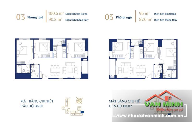 1. Căn hộ 3 ngủ - 2WC - Thiết kế tinh tế, phong thủy chú trọng công năng ánh sáng, thoáng đãng.